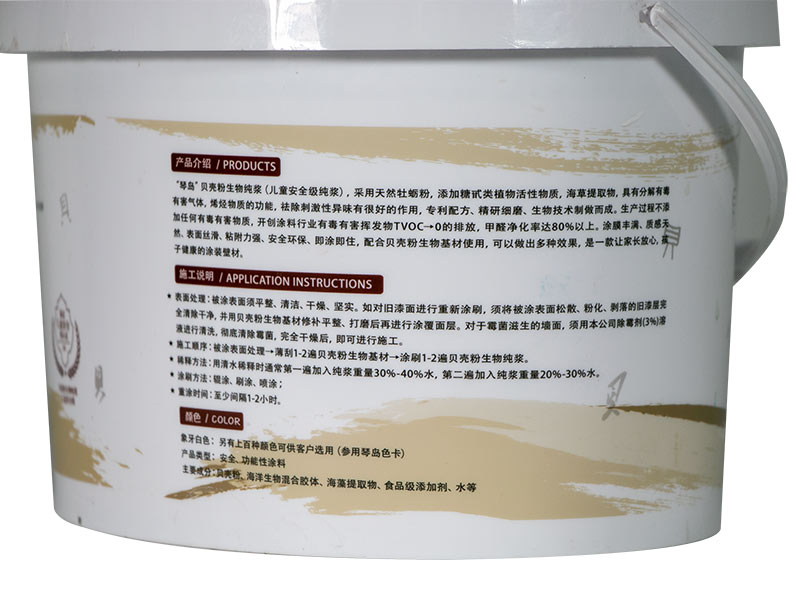 健康標準:CTC檢驗《兒童安全級認證》標準兒童房用產品;采用天然牡蠣殼,海洋生物化合物為原料,以特有的配方,特殊處理制作而成,它不添加任何有害物質,有害揮發物VOC→0排放;非煅燒工藝,生物活化專利技術生產;貝殼粉含量達90%;選用1500目優質超細貝殼干粉;甲醛凈化率高,富含5%-7%的甲殼素和17種氨基酸等,能有效分解甲醛等有害物質;可選擇噴、輥、刷。產品無異味、即刷即??;色彩多樣,涂刷順滑,質感豐滿,墻面呈現自然啞光,能有效防止光污染,保護視力健康。水呼吸功能,調濕、防火阻燃。