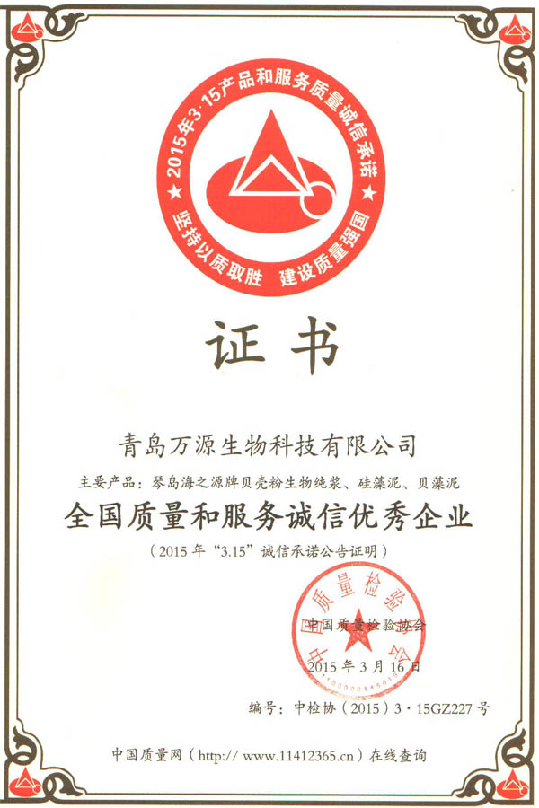 (2015年“3.15”誠信承諾公告證明)